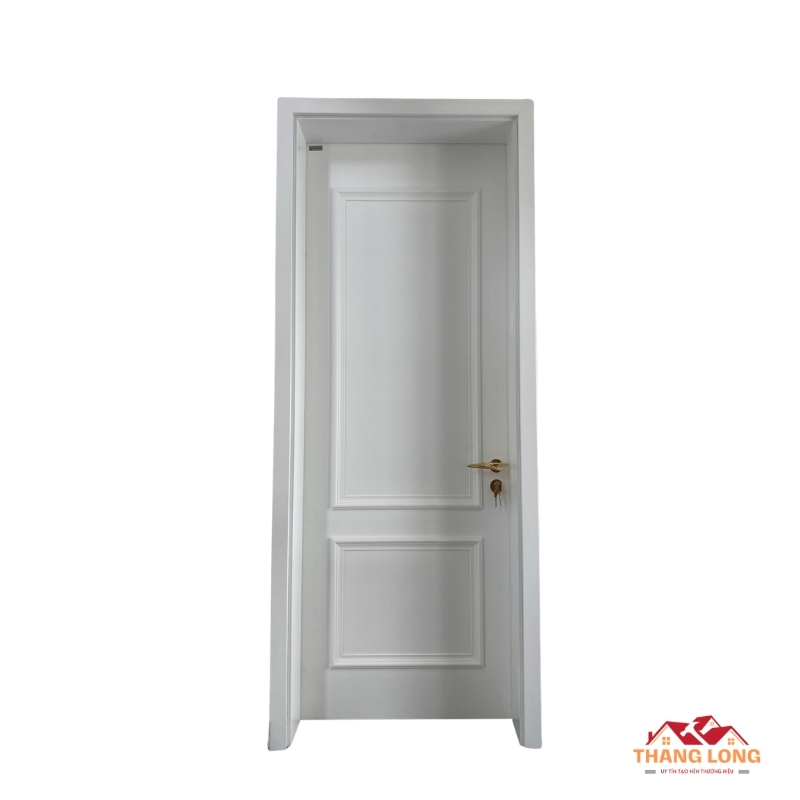 Điểm nhấn đắt giá của mẫu PN08 chính là thiết kế pano tân cổ điển. Cửa được chia thành 2 ô (1 ô lớn phía trên, 1 ô nhỏ phía dưới), một tỷ lệ vàng trong thiết kế cửa cổ điển. Các đường phào chỉ nổi được gia công sắc nét, tạo chiều sâu và sự sang trọng cho cánh cửa. Màu trắng trơn không chỉ mang lại cảm giác không gian rộng rãi, sạch sẽ mà còn là phông nền hoàn hảo để làm nổi bật các phụ kiện như tay khóa màu vàng đồng, tạo nên một tổng thể hài hòa và đẳng cấp.